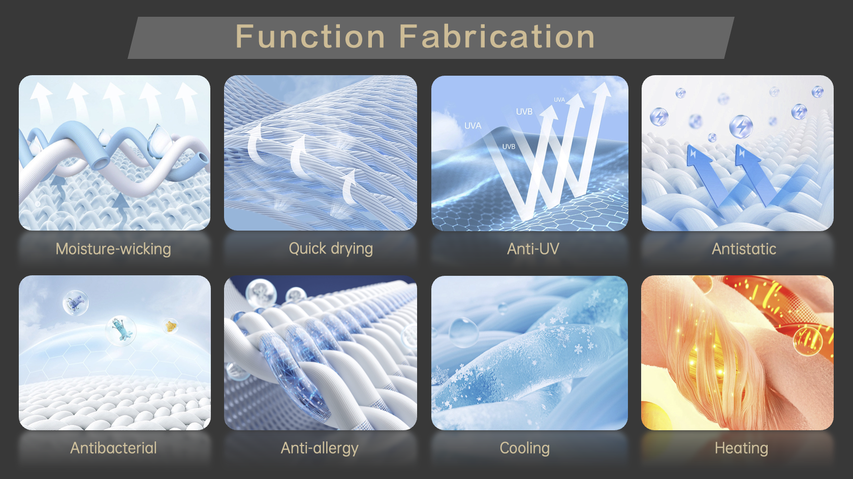 Integrated technologies for cooling, protection, moisture control, and thermal regulation.