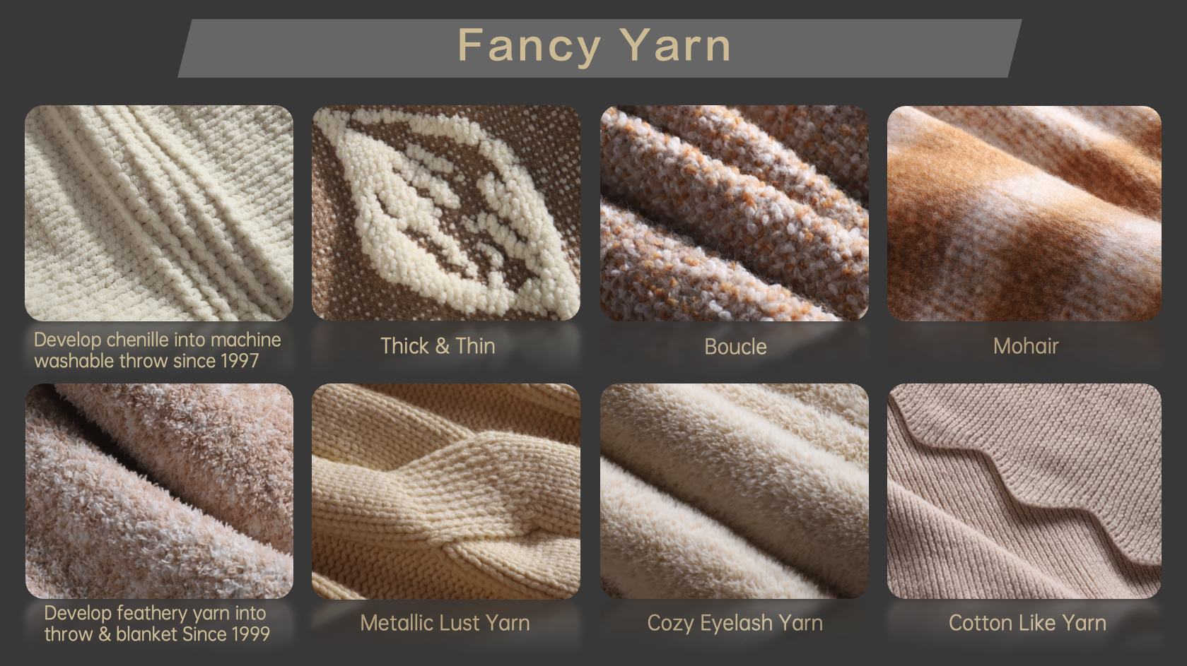 Innovative yarn structures transforming texture, warmth, and visual dimension.