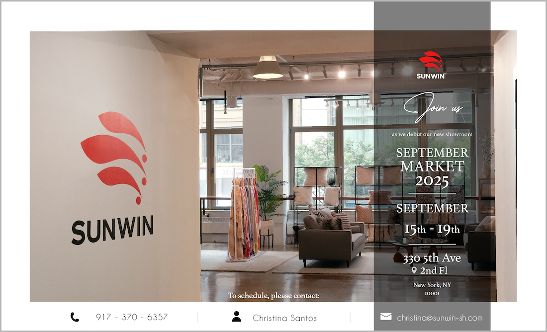 Sunwin Global Industry Inc. will be showcasing our newest collections across bedding, blankets, and home décor — combining cutting-edge technology with timeless style. Whether you’re seeking sustainable solutions, luxury comfort, or fresh seasonal designs, our team is ready to inspire and connect.